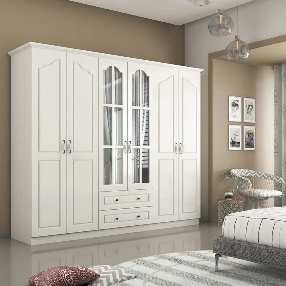 The armoire also features two mirrored doors, which not only provide a convenient spot to check your appearance, but also help to open up your room, making it appear larger and more spacious. Upgrade your bedroom with this stunning wardrobe armoire today!