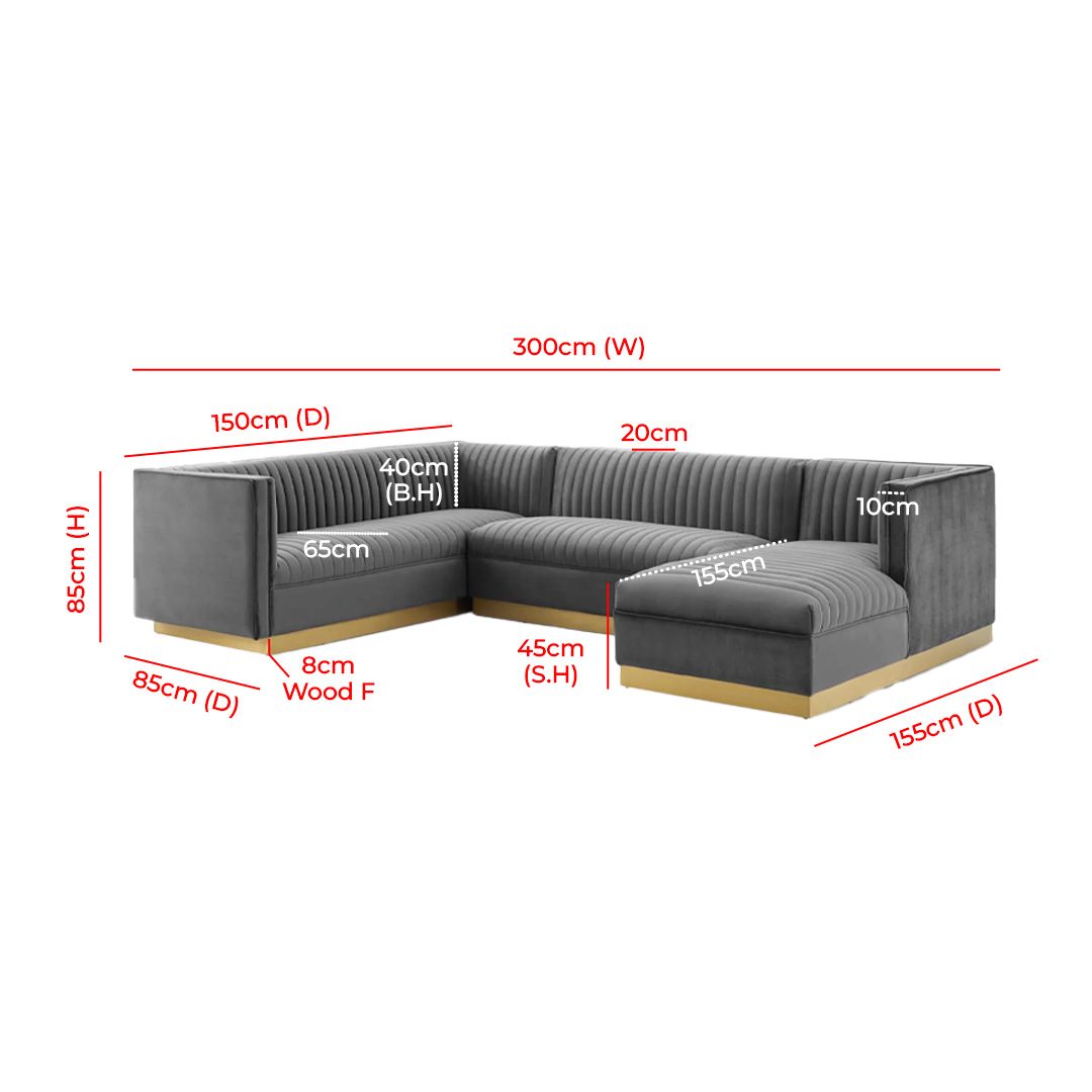 - Overall Dimensions: 300cm W x 150cm D x 85 cm H