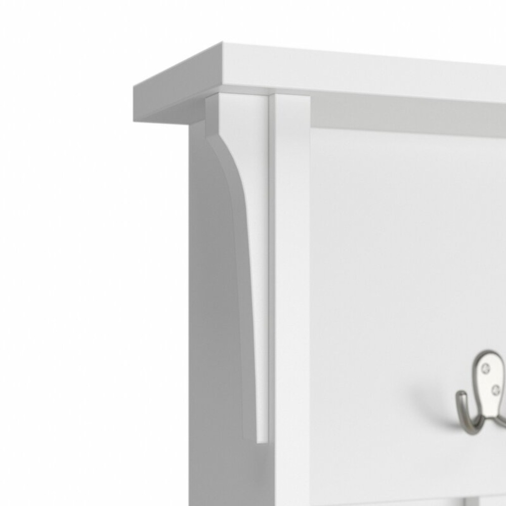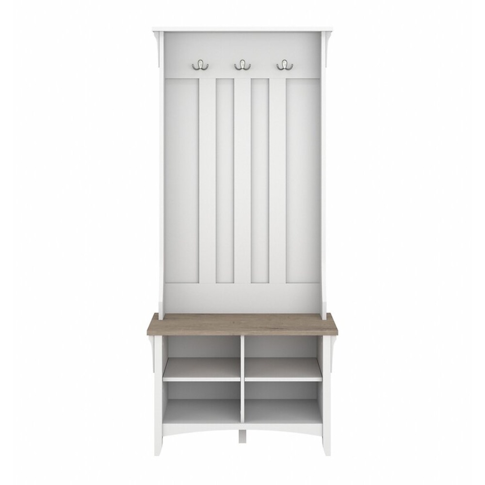 Let the bush furniture haubert hall tree bench welcome you home. Have a seat on top of the spacious entryway bench while you put on or take off your shoes. Four cubby shelves organize your entryway so you’re not tripping over footwear when you walk in the door. Set your bags down on top of the Shoe Bench while you hang up your coat and get comfortable. The hall tree has tumbled double prong hooks to hold your family’s jackets, scarves, hats, and more.