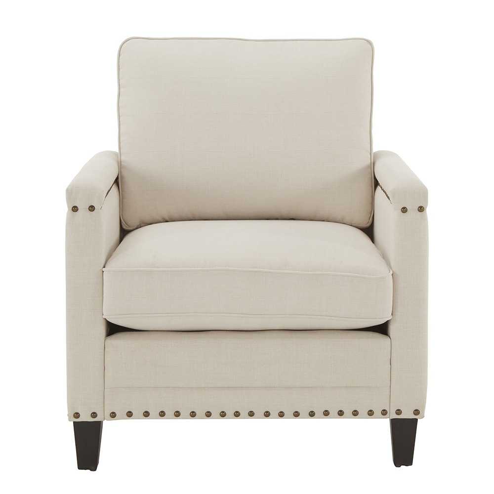 Experience a whole new level of luxury, style, and comfort with this ivory upholstered chair. Its nail head trim offers the ideal splash of glimmer, while a rich ivory linen upholstery provides the comfort needed after a long day, atop a semi-soft seat cushion. Don’t forget the rubberwood construction, either, which ensures long-lasting enjoyment.