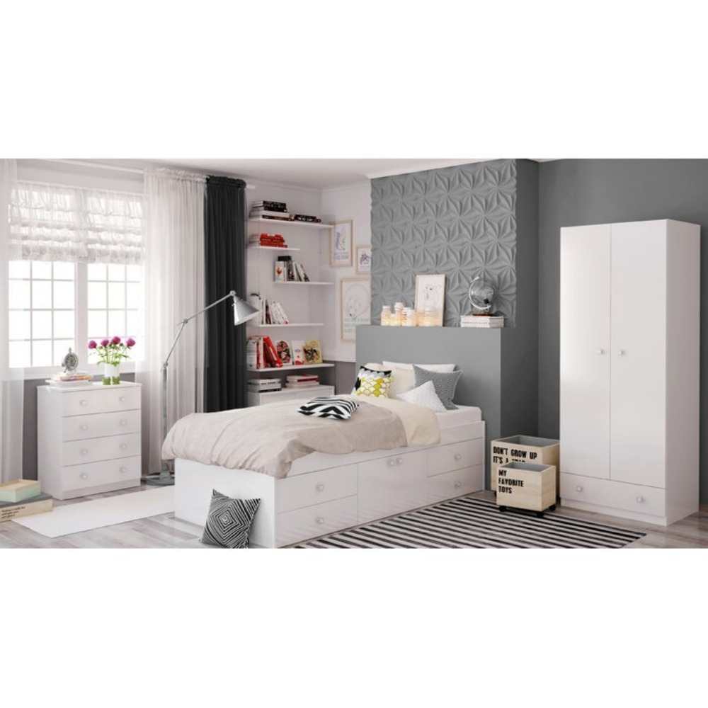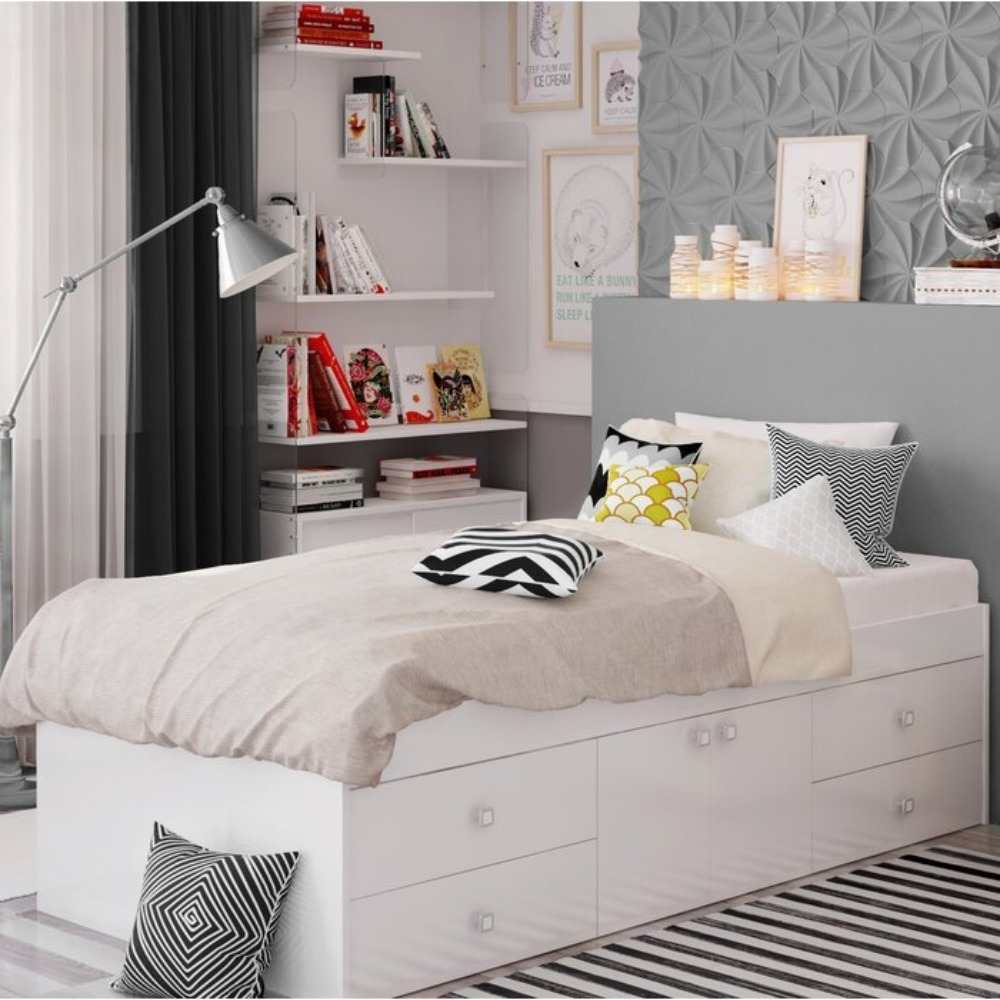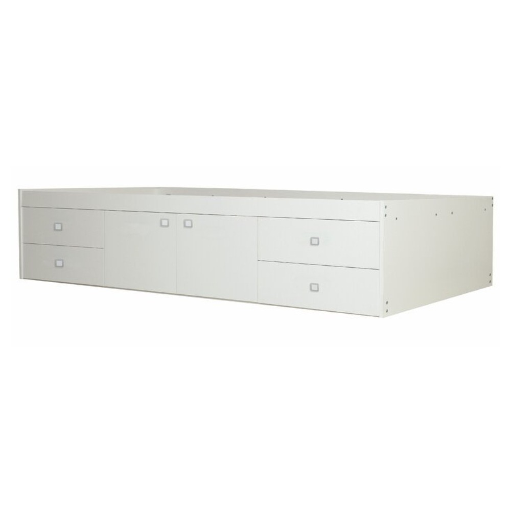 This klara single cabin bed provides a cozy place to sleep along with storage solutions. The bed includes slats for a comfortable night’s sleep and features four drawers and two cupboards built into the frame for easy under-the-bed storage. A stylish modern design in clean white makes it a great fit for any existing bedroom décor. The bed is made from manufactured wood and comes with a one year warranty. Assembly is required and no mattress is included.