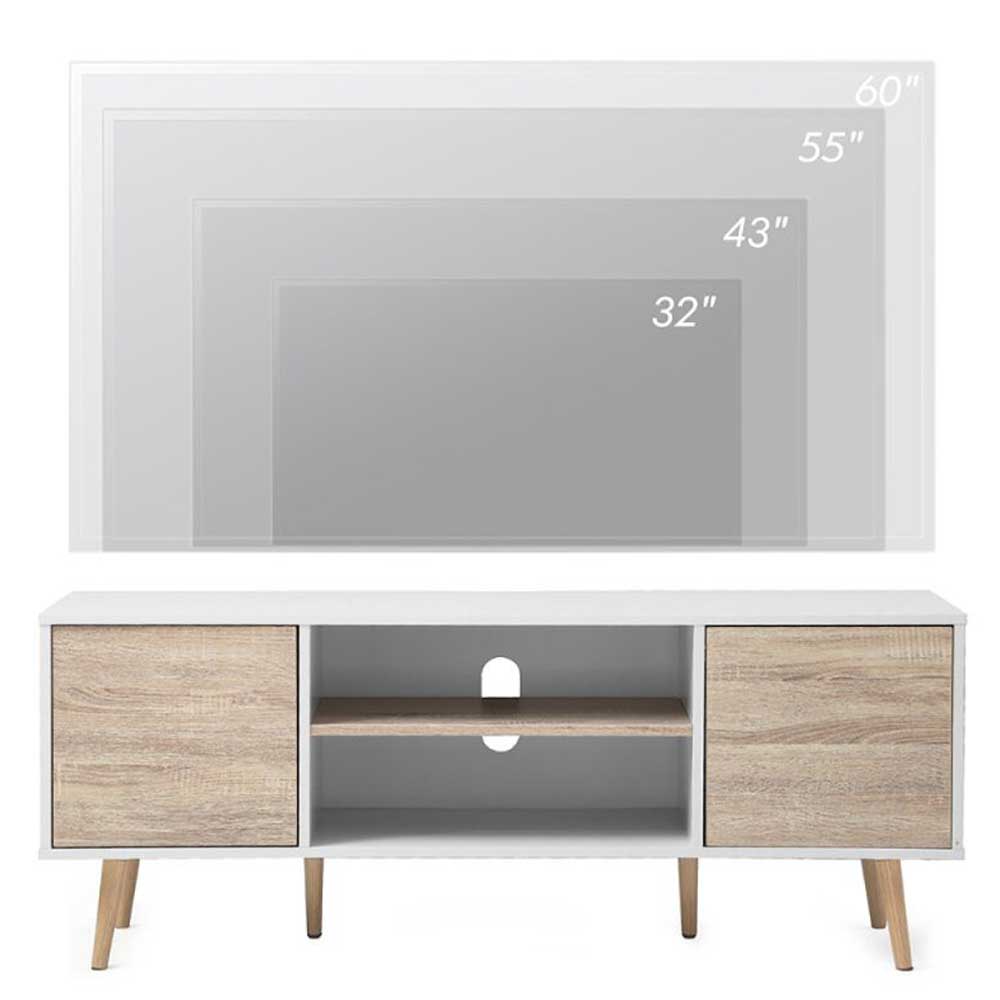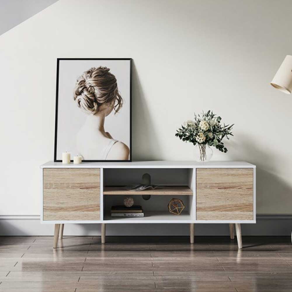 Holds what you need? This Malmo TV Stand features 2 shelving areas and push-to-open doors, a large tabletop for your TV, cable boxes, and movies. With the simple push-to-open cabinet door, you can say goodbye to unnecessary door handles and grab your belongings with ease!