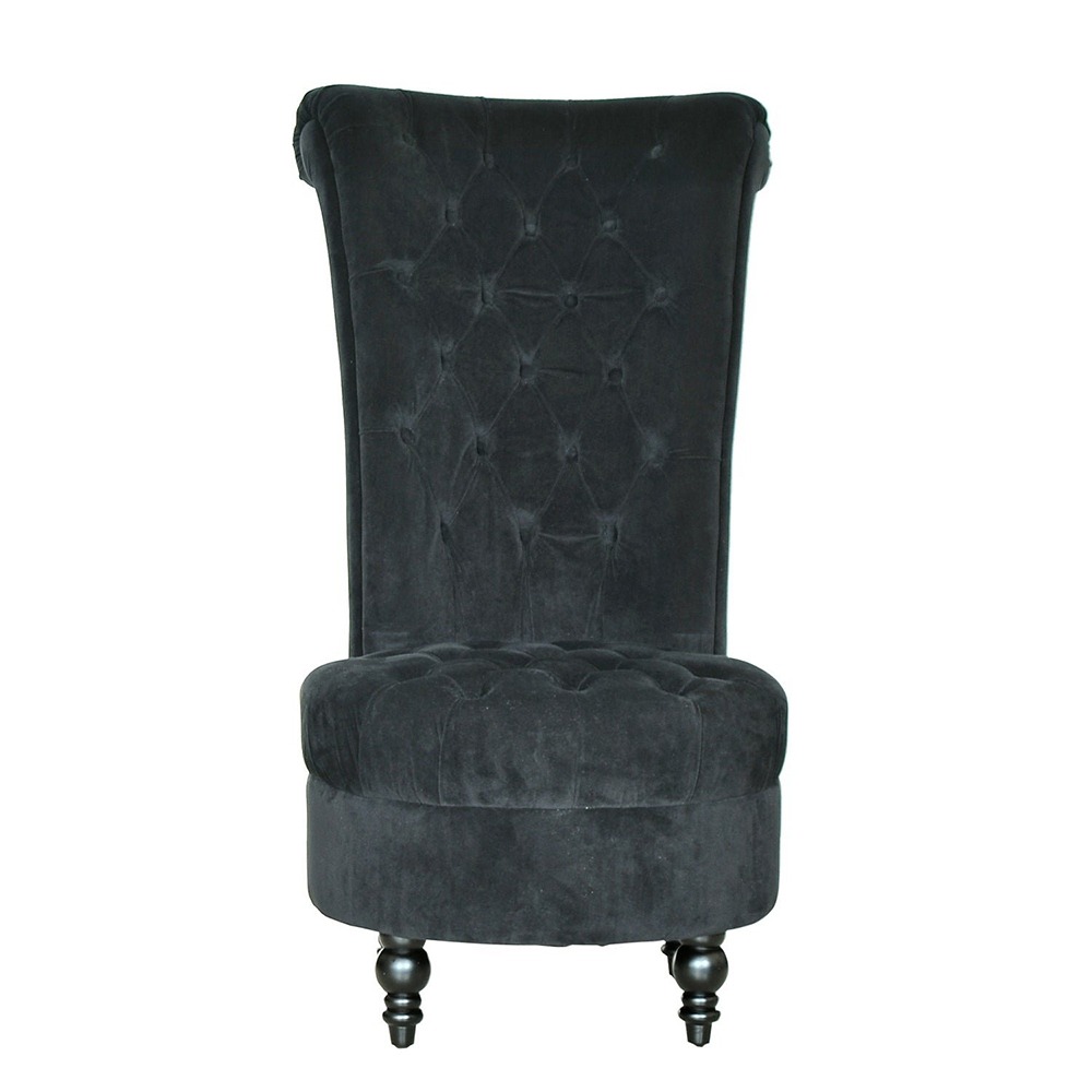 Elevate your d?cor with this luxurious accent chair. Featuring a high, scrolled, button-tufted backrest, the chair lends a striking profile to any space, and its soft velvet upholstery and thick padded seat offer comfort. Sturdy birch construction ensures lasting style and support, and the chair doubles as an ottoman for versatility.