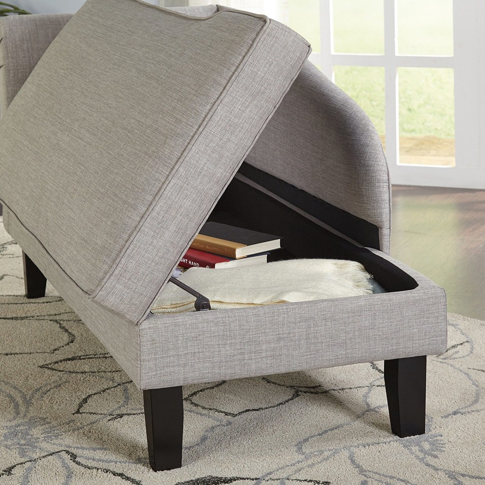 Settle down on this Simple Living Storage Chaise lounge for soothing respite or a quiet afternoon of reading. The sturdy hardwood frame ensures a firm foundation with comfortable elevation, while the half back and rolled arm offer cozy rear and side support when you recline. Fill the hidden storage space with books or blankets to make this chaise lounge the perfect relaxation spot.
