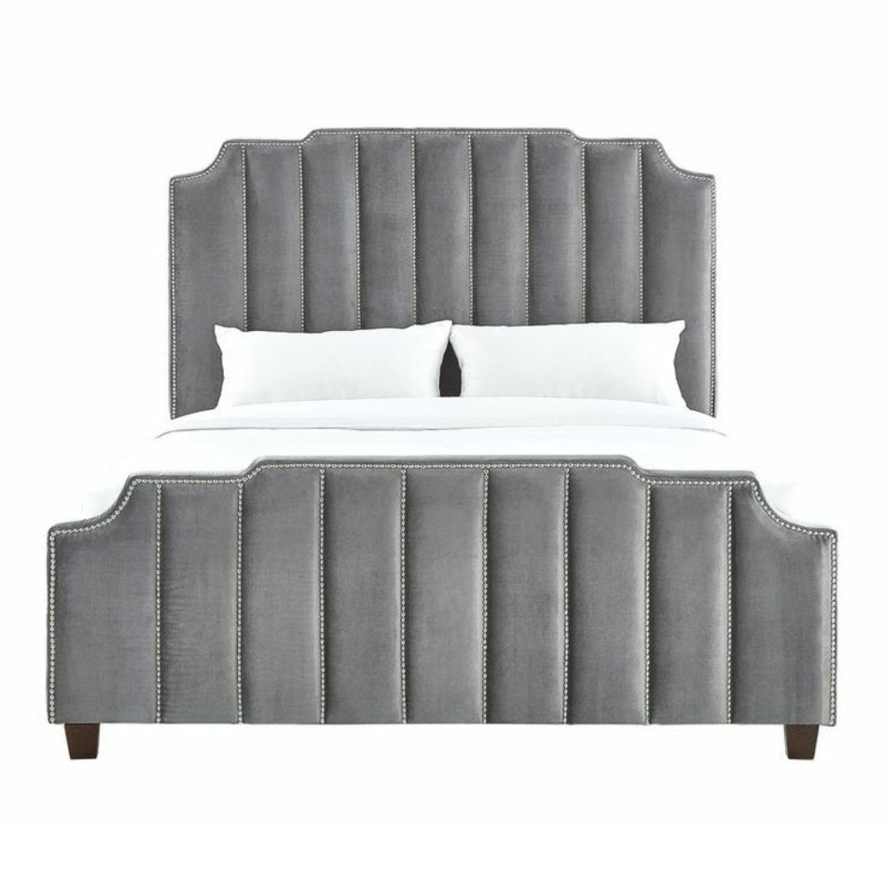 Enjoy a good night’s sleep with this contemporary bed by BAF. Grey-finished nail head trim on the headboard lends a refined touch, while foam padding and velvet upholstery enhance the relaxed feel and look of your bedroom. Solid rubberwood and engineered wood deliver a sturdy design that stands up to daily use.