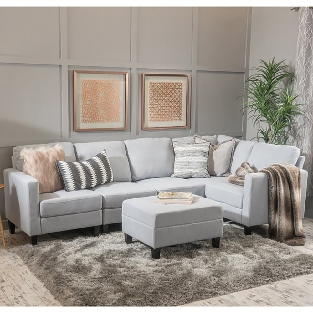 Set up a spot for wonderful relaxation in your home with this expansive and versatile sectional sofa. The set is modular to allow for convertible design and includes an ottoman for propping up your feet. Soft fabric in your choice of colors is paired with extra plush cushions for a lovely, welcoming seat your friends and family will enjoy.